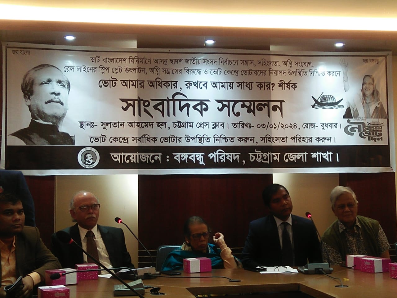 বঙ্গবন্ধু পরিষদ, চট্টগ্রাম জেলা শাখা ভোটারদেরকে ভোটে অংশগ্রহণ করা জন্য এবং ভোট প্রতিহত করার যে অপচেষ্টা কিছু কিছু দল করছে তার বিরুদ্ধে জনগণকে সচেতন করা এবং ভোটকেন্দ্রে যাওয়ার সাহস যোগানোর জন্য গত ১৮ ডিসেম্বর তারিখ থেকে বিভিন্ন ধরনের প্রচারনামূলক কর্মকাণ্ড করে যাচ্ছেন। তারমধ্যে উল্লেখযোগ্য হল গত ১৫ বছরের উন্নয়ন, সমৃদ্ধি ও মর্যাদার লড়াইয়ে বাংলাদেশের অগ্রগতির চিত্র তুলে ধরার জন্য লিফলেট বিতরণ, পথসভা, সুধী সমাবেশ ও আলোচনা সভা উল্লেখযোগ্য। আজকের সংবাদ সম্মেলনের মাধ্যমে তার কিছু নমুনা আপনাদের সামনে তুলে ধরার প্রয়াস পাচ্ছি।
