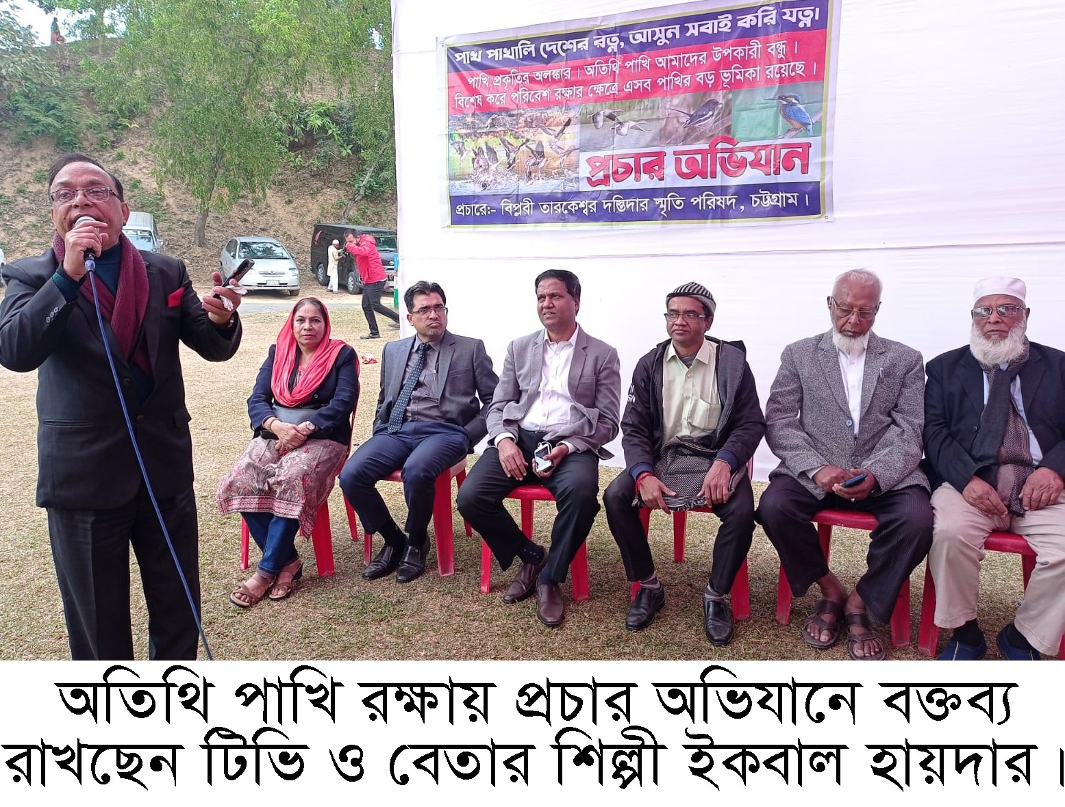 এতে বক্তারা বলেন, প্রকৃতি, পরিবেশ ও বনের জন্য পাখি অপরিহার্য্য। পাখির সংখ্যা যেখানে কম, সেখানে প্রকৃতি মৃত প্রায়। প্রকৃতির সৌন্দর্যেও পাখির ভূমিকা অনেক। পাখি বিজ্ঞানীরা বলেছেন, মানুষ না থাকলে পাখি থাকবে কিন্তু পাখি না থাকলে মানুষ থাকবে না। বিজ্ঞানের অতি উন্নয়নের ফলে সারা পৃথিবীতে পাখি কমে যাচ্ছে বলে বলেন বক্তারা। একটি বৈশ্বিক গবেষণার তথ্যমতে পৃথিবীতে পাখির সংখ্যা ১১ হাজার প্রজাতির। এর মধ্যে ৪৮ শতাংশ বা ৫ হাজার ২৪৫ প্রজাতির পাখির সংখ্যা কমেছে। আমাদের দেশের পাখির সংখ্যা ৬৫০ প্রজাতির। বিলুপ্ত হয়েছে ৩০ প্রজাতির। পাখি বিজ্ঞানিদের মতে আজকে থেকে ২ দশক আগেও শীত মৌসুমে আমাদের দেশে প্রায় ২১৫ প্রজাতির পাখি আসতো। এখন এর পরিমাণ ক্রমান্বয়ে হ্রাস পাচ্ছে। এর কারণ হিসেবে বলেন অপরিকল্পিতভাবে নগরায়ন, জলবায়ু পরিবর্তন, জলাশয় ভরাট করে বাড়িঘর নির্মাণ, গাড়ির উচ্চ হর্ন, আতশবাজি, মাইকিং, কনসার্টের শব্দ, কনস্ট্রাকশক সাইটের শব্দ, প্রশাসনের ভূমিকা পালনে অবহেলা। বক্তারা বলেন, গত ১ জানুয়ারী ২০২৪ সাল নতুন বছরকে বরণ করার নামে আতশবাজি ও ফটকা ফাটিয়ে প্রায় ২০০ পাখি হত্যা করেছে ঢাকা শহরে। আজ পর্যন্ত একজনকেও প্রশাসন আইনের আওতায় আনতে পারে নি। এটা আমাদের জন্য খুবই লজ্জ্বাজনক। আমাদের দেশে প্রতিনিয়ত বিভিন্ন অনুষ্ঠানকে কেন্দ্র করে আতশবাজি ও ফটকা ফাটানো হচ্ছে ইহা পাখির জন্য খুবই ক্ষতিকর। কিন্তু প্রশাসনের নীরব ভূমিকায় আমরা হতাশ ও হতবাক। অতিথি পাখি শিকার বন্ধ ও রক্ষা করতে আন্তর্জাতিক আইন করার জন্য বিশ্ব নেতাদের প্রতি আহ্বান জানান। অতিথি পাখির জন্য সরকারিভাবে খাবারের ব্যবস্থা করতে হবে। ২০১২ সালের বন ও বন্যপ্রাণী আইনকে কঠোরভাবে পালন করার জন্য প্রশাসনের কাছে জোর দাবী জানান।