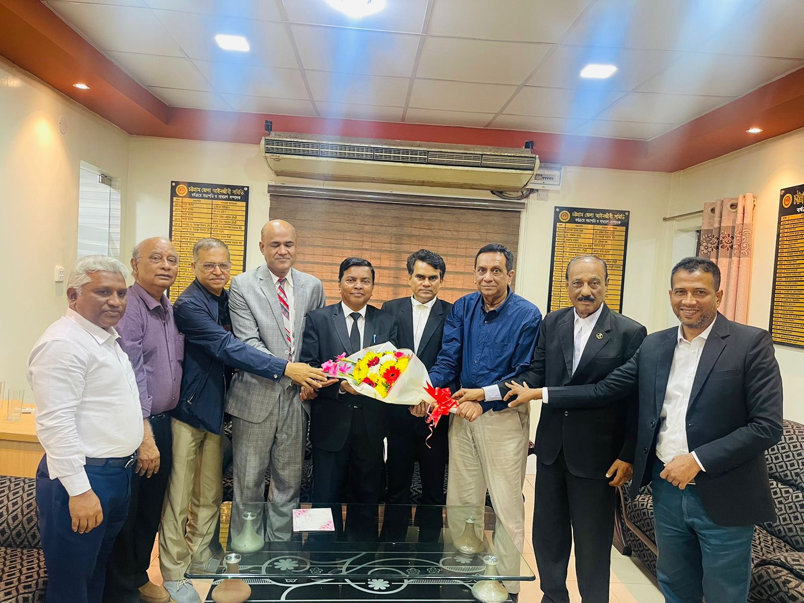 নিউজগার্ডেন ডেস্ক: চট্টগ্রাম জেলা আইনজীবী সমিতির নবনির্বাচিত সভাপতি এড. নাজিম উদ্দীন চৌধুরী, সাধারণ সম্পাদক এড. আশরাফ হোসেন চৌধুরী রাজ্জাক সহ সাধারণ সম্পাদক এড. কাশেম কামালকে আজ ১৪ ফেব্রুয়ারী (বুধবার) বিকালে চট্টগ্রাম আইনজীবী ভবনে ফুলেল শুভেচ্ছা জানান বাংলাদেশ সম্মিলিত পেশাজীবী পরিষদ বিএসপিপি, চট্টগ্রাম শাখার নেতৃবৃন্দ।