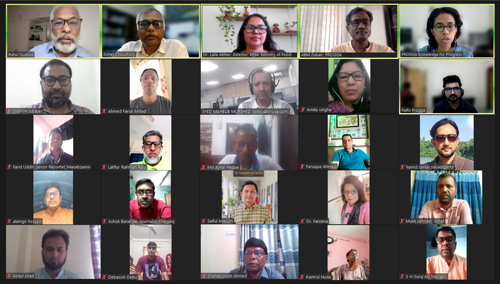 ওয়েবিনারে আলোচক হিসেবে আরও উপস্থিত ছিলেন বাংলাদেশ নিরাপদ খাদ্য কর্তৃপক্ষের পরিচালক ড. লায়লা আখতার। ওয়েবিনারে মূল উপস্থাপনা তুলে ধরেন প্রজ্ঞা’র সমন্বয়ক সাদিয়া গালিবা প্রভা এবং সভাপতিত্ব করেন প্রজ্ঞা’র নির্বাহী পরিচালক এবিএম জুবায়ের। দেশের বিভিন্ন অঞ্চল থেকে নানা শ্রেণি পেশার মানুষ এই ওয়েবিনারে অংশ নেন।