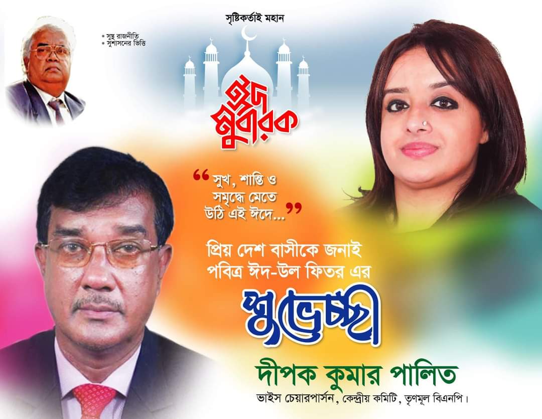 নিউজগার্ডেন ডেস্ক: দেশবাসীকে পবিত্র ঈদ-উল-ফিতর এর অগ্রীম শুভেচ্ছা জানিয়েছেন তৃলমূল বিএনপির কেন্দ্রীয় কমিটির ভাইস চেয়ারপার্সন দীপক কুমার পালিত। পরিবার, আত্মীয় স্বজন, পাড়া-প্রতিবেশী, অসহায় মানুষ সবার সঙ্গে আনন্দ ভাগাভাগি করে ঈদ উদযাপন করার আহ্বান জানিয়েছেন।