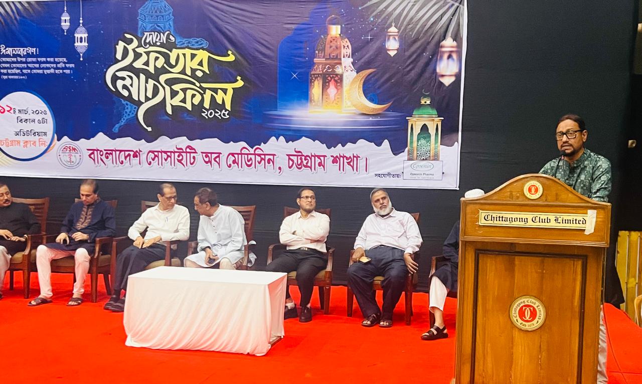 বাংলাদেশ সোসাইটি অব মেডিসিন চট্টগ্রাম শাখার উদ্যোগে আয়োজিত দোয়া ও ইফতার মাহফিলে প্রধান অতিথির বক্তব্যে তিনি এসব কথা বলেন।