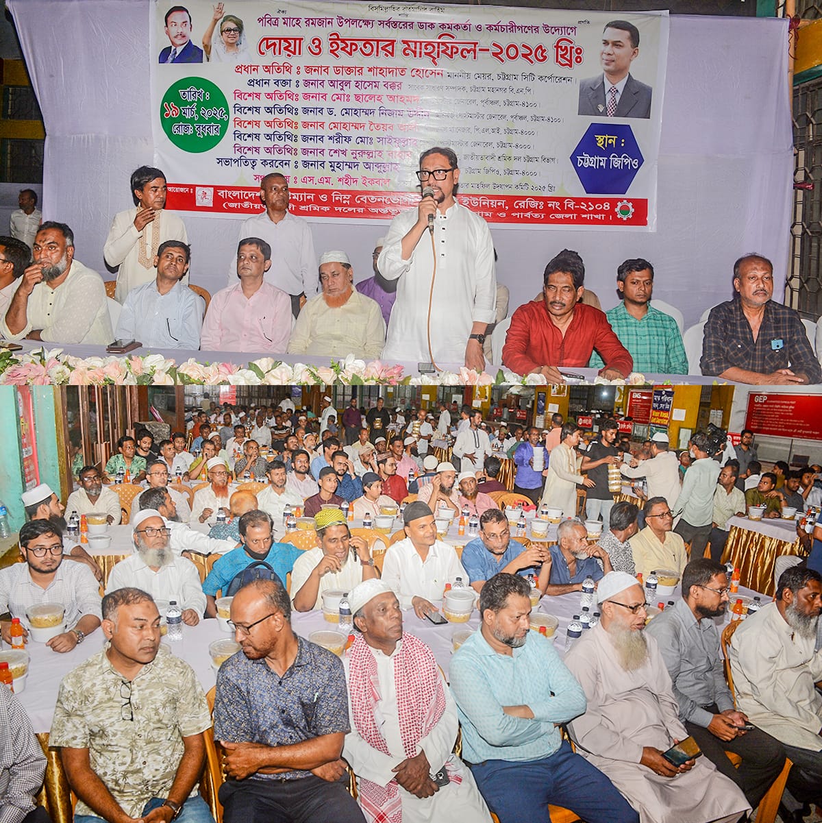 তিনি বুধবার (১৯ মার্চ) বিকেলে নগরীর নিউ মার্কেট সংলগ্ন জিপিও চত্বরে পবিত্র মাহে রমজান উপলক্ষে বাংলাদেশ পোষ্টম্যান ও নিম্ন বেতনভোগী কর্মচারী ইউনিয়নের (শ্রমিকদলের অন্তর্ভুক্ত, রেজি: নং ২১০৪) দোয়া ও ইফতার মাহফিলে প্রধান অতিথির বক্তব্যে এসব কথা বলেন।
