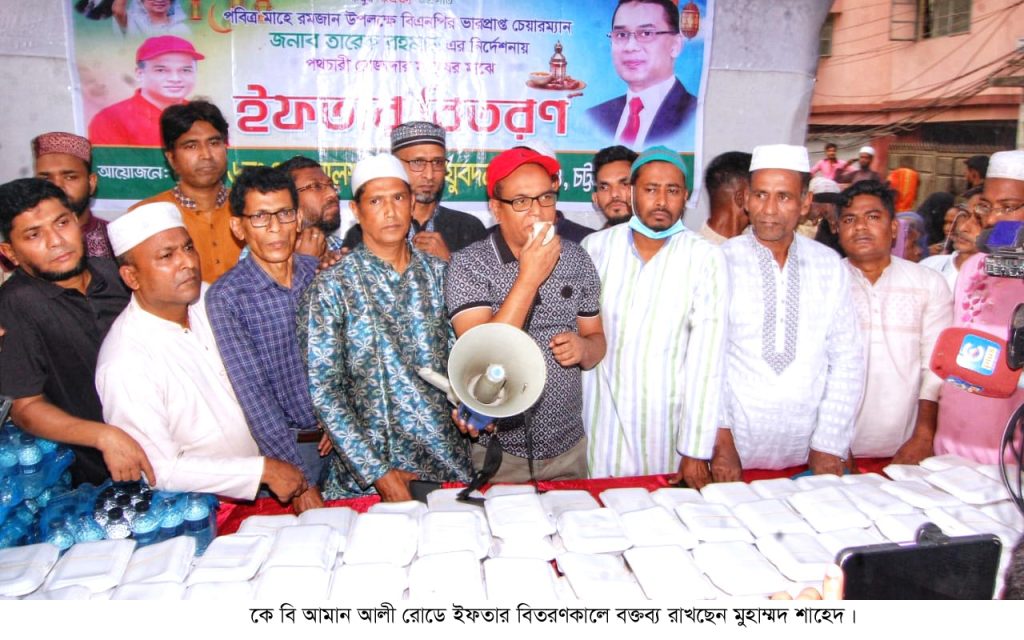 ৬নং পূর্ব ষোলশহর ওয়ার্ড যুবদলের সাবেক যুগ্ম আহবায়ক শফিউল্লাহ মামুনের সভাপতিতে ও শহিদুল আলমের পরিচালনায় ইফতার বিতরণকালে উপস্থিত ছিলেন চান্দগাঁও থানা যুবদলের সাবেক আহবায়ক গুলজার হোসেন, মহানগর যুবদলের সাবেক সম্পাদক ম-লীর সদস্য ইফতেখার শাহরিয়ার আজম,জ হিরুল ইসলাম জহির, সহ সম্পাদক সাইদুল ইসলাম, সাবেক সদস্য কলিম উল্লাহ, প্রফেসর সাইদুল হক সিকদার, থানা যুবদলের সাবেক সিনিয়র যুগ্ম আহবায়ক মোর্শেদ কামাল, ৪নং ওয়ার্ড যুবদলের সাবেক আহবায়ক আবু বকর বাবু, ৬নং ওয়ার্ড যুবদলের সাবেক সিনিয়র যুগ্ম আহবায়ক ইস্কান্দর হোসেন, থানা যুবদলের সাবেক সদস্য সিরাজুল ইসলাম ইকবাল, জালাল উদ্দিন, সুলাইমান, ফজল কবির, আকবর, থানা ছাত্রদলের যুগ্ম আহবায়ক আব্দুল আজিজ সাউদুল ইসলাম ইমন, বশির, নবী ও এরশাদ সহ প্রমুখ নেতৃবৃন্দ।