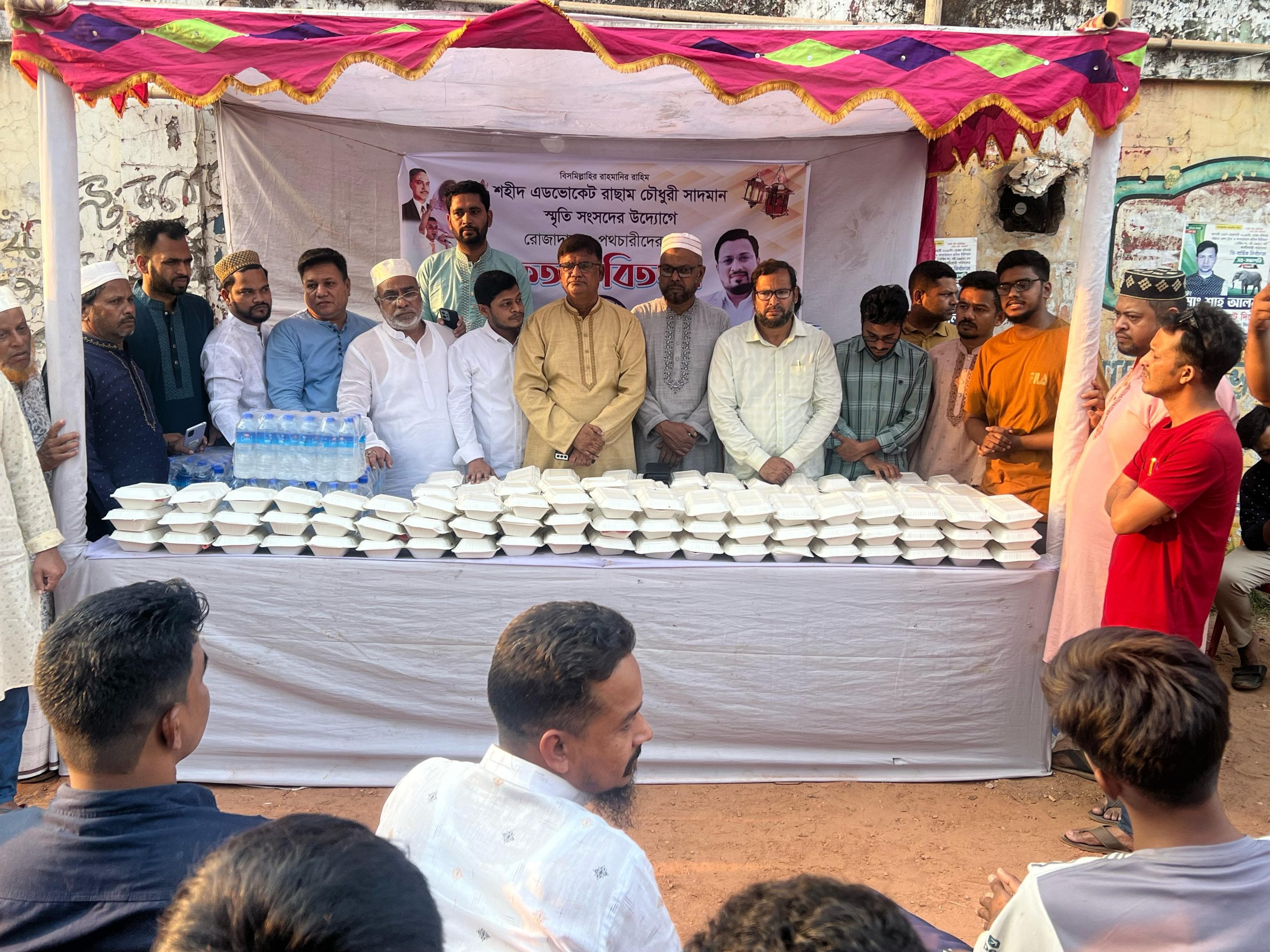 চট্টগ্রাম মহানগর ছাত্রদলের সাবেক আইন বিষয়ক সম্পাদক, চট্টগ্রাম মহানগর আইন ছাত্র ফোরামের আহবায়ক ও বেসরকারী বিশ্ববিদ্যালয় কেন্দ্রীয় সংসদের সহ-সাংগঠনিক সম্পাদক শহীদ এডভোকেট রাছাম চৌধুরী সাদমান স্মৃতি সংসদের উদ্যোগে বায়েজিদ থানাধীন ২নং জালালাবাদ ওয়ার্ডস্থ বটতলী মাজার গেইটস্থ এলাকায় ৩০০ রোজাদের ও পথচারীদের মাঝে ইফতার সামগ্রী বিতরণ করা হয়।