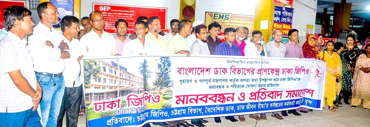 ঢাকা জিপিও সুরক্ষায় চট্টগ্রাম বিভাগের আহবায়ক এস এম শহীদ ইকবালের সভাপতিত্বে ও কর্মচারী প্রতিনিধি নজরুল ইসলামের পরিচালনায় মানববন্ধনে সংহতি প্রকাশ করে বক্তব্য রাখেন চট্টগ্রাম জিপিও'র সিনিয়র পোস্ট মাস্টার মুহাম্মদ আবদুল্লাহ, ডেপুটি পোস্ট মাস্টার জেনারেল শরীফ মো. সাইফুল্লাহ, সহকারী পোস্ট মাস্টার জেনারেল মো. শাহজাহান (ট্রেজারী), আবদুর রহমান (বৈদেশিক ডাক), ডি আর এম মনজুর হোসেন (পি এল আই), পোস্ট মাস্টার পটিয়া তাজুল ইসলাম, চট্টগ্রাম জিপিও'র ডিপিএম আলম করিম, সুপার চট্টগ্রাম বিভাগ রাজিব চৌধুরী, চট্টগ্রাম জিপিও'র আই পি ও জিয়াউল হক চৌধুরী, সহকারী পোস্ট মাস্টার মনিরুল আলম মোল্লা, সাইফুল ইসলাম, জাকির হোসেন, আনোয়ার হোসেন, নাছরিন আকতার, বদিউল আলম, শেখ আমিনুর রহমান, স্টোনো টু ডিপিএমজি সাইফুল আলম, সুপারভাইজার পিএলআই বাসু দেব চন্দ্র দে, কর্মচারী প্রতিনিধি মোজাম্মেল হক, হান্নান শাহ, মো. আলমগীর, শাহাদাত হোসেন, পারভেজ আলম, ইমাম উদ্দিন প্রমূখ।
