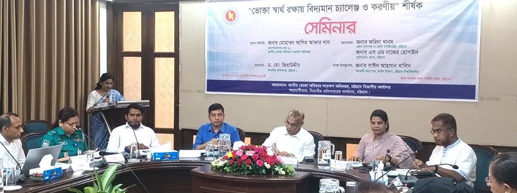 ১৬ জুন ২০২৫ইং জাতীয় ভোক্তা অধিকার সংরক্ষণ অধিদপ্তর, চট্টগ্রাম বিভাগীয় কার্যালয় এর উদ্যোগে বিভাগীয় কমিশনার কার্যালয় এর সহযোগিতায় সার্কিট হাউজ, চট্টগ্রাম এর সম্মেলন কক্ষে "ভোক্তা স্বার্থ রক্ষায় চ্যালেঞ্জ ও করণীয়" শীর্ষক সেমিনারে প্রধান অতিথির বক্তব্যে উপরোক্ত মন্তব্য করেন। চট্টগ্রামের বিভাগীয় কমিশনার ড. মো: জিয়াউদ্দীনের সভাপতিত্বে সেমিনারে আলোচক ছিলেন চট্টগ্রামের জেলা প্রশাসক ফরিদা খানম ও ক্যাব কেন্দ্রিয় কমিটির ভাইস প্রেসিডেন্ট এস এম নাজের হোসাইন। জাতীয় ভোক্তা অধিকার সংরক্ষণ অধিদপ্তর চট্টগ্রাম বিভাগীয় কার্যালয়ের উপপরিচালক ফয়েজউল্যার স্বাগত বক্তব্যে সেমিনারে চট্টগ্রাম বিশ্ববিদ্যালয়ের আইন অনুষদের সহকারী অধ্যাপক সাইদ আহসান খালিদ মূল প্রবন্ধ উপস্থাপন করেন। আলোচনায় অংশনেন সিএমপি অতিরিক্ত কমিশনার মাহমুদা বেগম, জেলা প্রাণী সম্পদ কর্মকর্তা ডাঃ মোঃ আলমগীর, জেলা নিরাপদ খাদ্য কর্মকর্তা ফারহানুল ইসলাম, সিভিল সার্জন অফিসের সিনিয়র স্বাস্থ্য শিক্ষা কর্মকর্তা থোয়াইনু মং মার্মা, চট্টগ্রাম উইমেন চেম্বারের সাবেক ভাইস প্রেসিডেন্ট আইভি হাসান, ক্যাব চট্টগ্রাম মহানগরের সভাপতি জেসমিন সুলতানা পারু, কাজীর দেউরী বাজার ব্যবসায়ী সমিতির সভাপতি আবদুর রাজ্জাক, বাংলাদেশ দোকান মালিক সমিতির সভাপতি সালেহ আহমদ সোলেমান, চট্টগ্রাম রেস্তোরা মালিক সমিতির সভাপতি ইলিয়াছ আহমদ, বারকোট রেস্টোরেস্ট এর স্বত্ত্বাধিকারী মনজুরুল হক, বনফুলের জেনারেল ম্যানেজার আনামুল হক, ফুলকপির জেনারেল ম্যানেজার আবদুর সবুর, ক্যাব চট্টগ্রাম মহানগরের যুগ্ন সম্পাদক মোঃ সেলিম জাহাঙ্গীর, চট্টগ্রাম ড্রিংকিং ওয়াটার ম্যানুফেকচার ওয়ানার্স অ্যাসোসিয়েশনের সভাপতি ফয়সল আবদুল্লাহ আদনান, ক্যাব চট্টগ্রাম মহানগরের সাংগঠনিক সম্পাদক জান্নাতুল ফেরদৌস, যুব ক্যাব চট্টগ্রাম মহানগরের সভাপতি আবু হানিফ নোমান, যুব ক্যাব চট্টগ্রাম বিশ্ববিদ্যালয়ের সভাপতি রাব্বি তৌহিদ ও সাধারন সম্পাদক খাইরুল ইসলাম প্রমুখ।