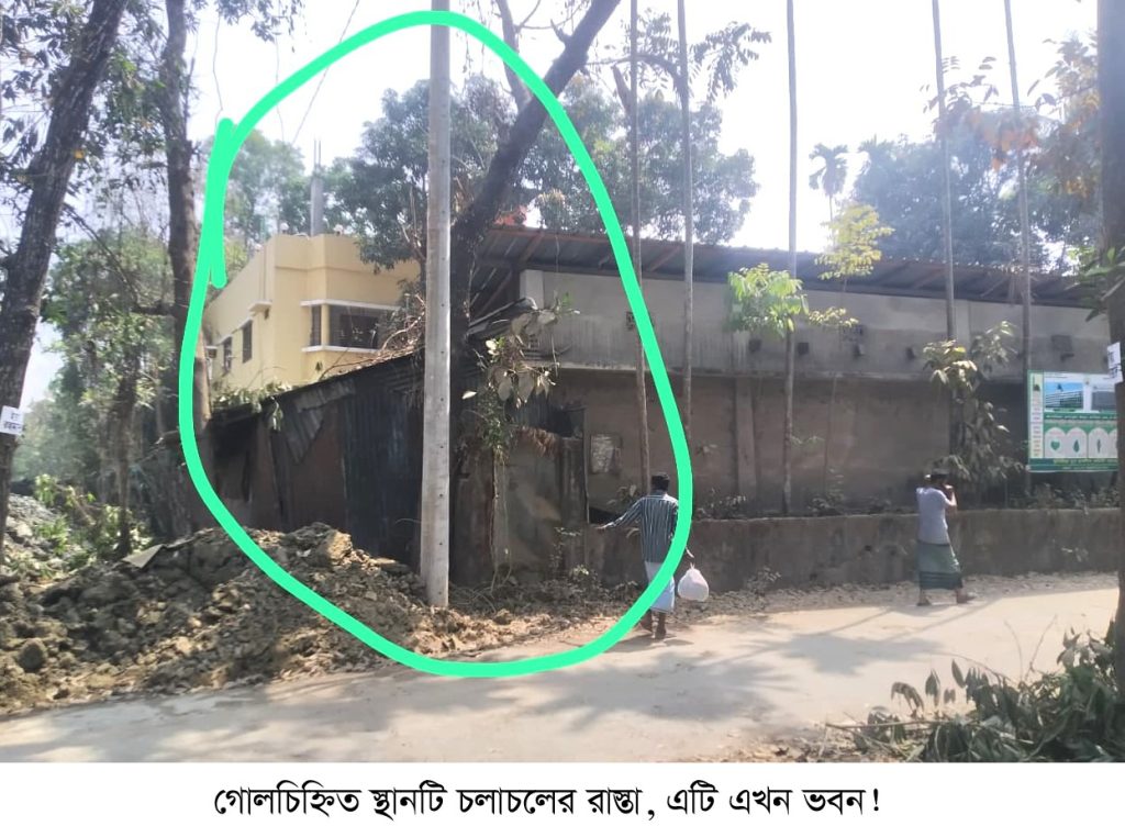 প্রতিবেদনে বলা হয়, “তফসীলোক্ত জায়গাটি আর.এস. ও পি.এস. জরিপ অনুযায়ী সরকারিকৃত রাস্তা হিসেবে চিহ্নিত। উক্ত জায়গায় নির্মাণাধীন ভবন আইনগতভাবে অননুমোদিত, যা চলাচল ব্যাহত করছে। অতএব, বন্দোবস্ত বাতিল করে ভবন উচ্ছেদপূর্বক জনসাধারণের চলাচলের জন্য উন্মুক্ত রাখা প্রয়োজন।”