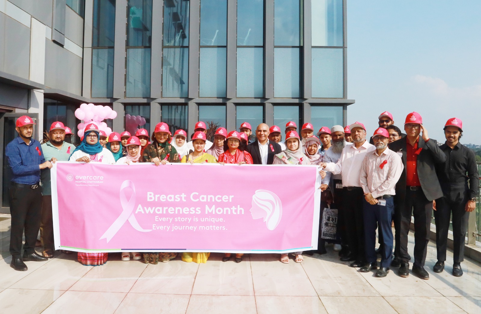 বন্দরনগরীরসর্ববৃহৎ হাসপাতাল এভারকেয়ার হসপিটাল চট্টগ্রাম সম্প্রতি ব্রেস্টক্যান্সার সচেতনতা মাস উপলক্ষে একটি পেশেন্টফোরাম ও সচেতনতামূলক র্যালির আয়োজন করেছে। নারীদের প্রাথমিকপর্যায়ে রোগ শনাক্তকরণ, চিকিৎসা ও সার্বিক স্তনস্বাস্থ্য সম্পর্কে জ্ঞান বৃদ্ধিইছিলো এ আয়োজনের মূল লক্ষ্য। অনুষ্ঠানেমেডিক্যাল ও রেডিয়েশন অনকোলজি বিভাগ থেকে উপস্থিত ছিলেনভিজিটিং সিনিয়র কনসালট্যান্ট প্রফেসর ডা.সাজ্জাদ মোহাম্মদ ইউসুফ, কনসালট্যান্ট ও কো-অর্ডিনেটর (রেডিওথেরাপি সার্ভিস) ডা. তানভির আহমেদ; কনসালট্যান্ট ডা. হাসনিনা আক্তার এবং এ্যাটেন্ডিং কনসালটেন্ট ডা. নয়ন ভৌমিক । এছাড়া আরও উপস্থিতছিলেন সানশাইন এডুকেশনের প্রতিষ্ঠাতা ওচেয়ারম্যান মিসেসশাফিয়া গাজী, এভারকেয়ার হাসপাতাল চট্টগ্রামেরচিফ অপারেটিং অফিসারসামীর সিং সহ হাসপাতালের সিনিয়র কনসালট্যান্ট, নার্স, রোগী ওস্টাফ।
