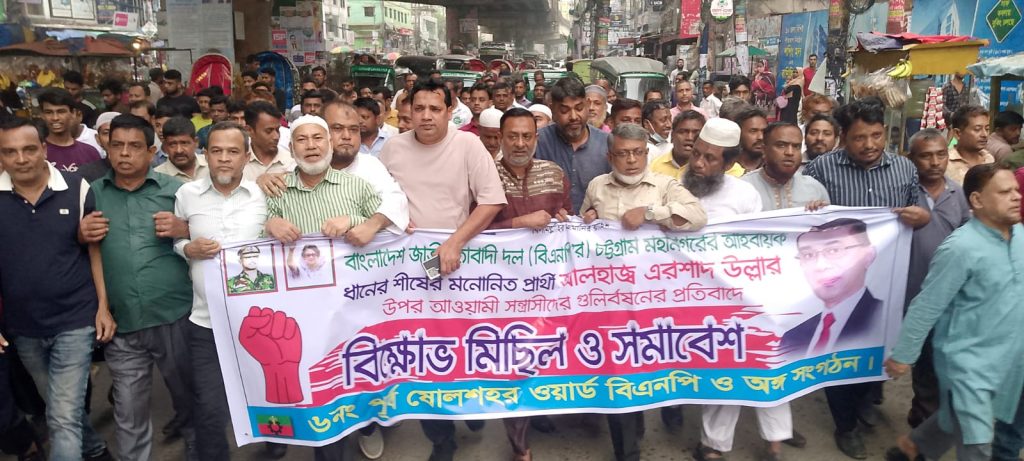 তিনি আজ ৬ নভেম্বর (বৃহস্পতিবার) বিকালে বহদ্দারহাটে ৬নং পূর্ব ষোলশহর বিএনপি ও অঙ্গসংগঠনের উদ্যোগে ধানের শীষের মনোনীত প্রার্থী এরশাদ উল্লাহর উপর আওয়ামী সন্ত্রাসীদের গুলি বর্ষণের প্রতিবাদে বিক্ষোভ মিছিল ও সমাবেশে প্রধান অতিথির বক্তব্যে এসব কথা বলেন।