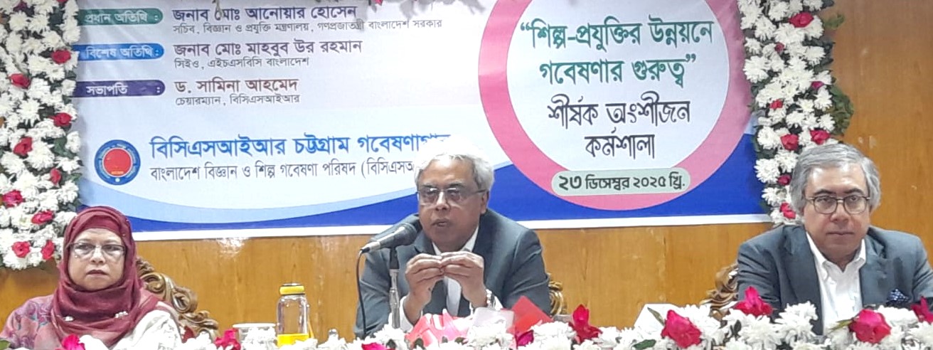 মঙ্গলবার সকালে বিসিএসআইআরের চট্টগ্রাম মিলনায়তনে ‘শিল্প প্রযুক্তির উন্নয়নে গবেষণার গুরুত্ব’ শীর্ষক অংশীজন কর্মশালা অনুষ্ঠানে তিনি এসব কথা বলেন।