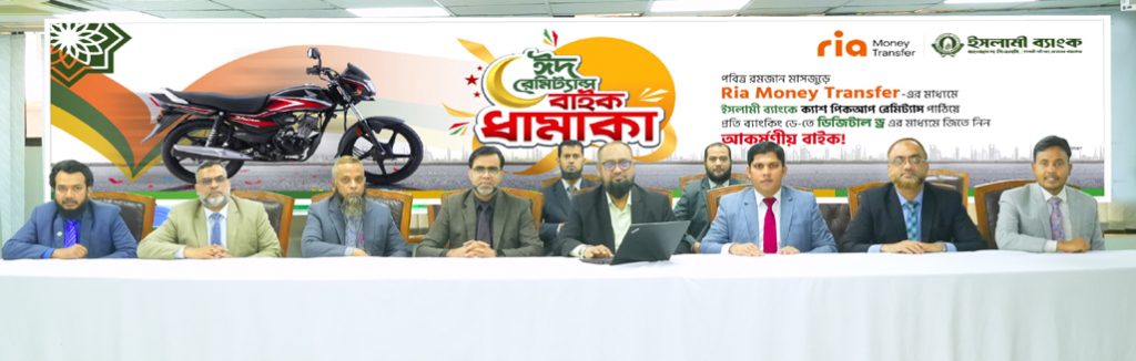 উল্লেখ্য মাহে রমাদান উপলক্ষ্যে ইসলামী ব্যাংকে রিয়া মানি ট্রান্সফারের মাধ্যমে ক্যাশ রেমিট্যান্স গ্রহীতাদের মধ্যে ডিজিটাল র্যাফেল ড্র’র মাধ্যমে প্রতি ব্যাংকিং কর্ম দিবসে (রবি-বৃহস্পতিবার) একটি করে মোট ২০টি মোটর সাইকেল উপহার দেওয়া হচ্ছে। এছাড়া রেমিট্যান্স গ্রাহকরা কমন গিফট উপহার পাবেন। ১৮ মার্চ ২০২৬ পর্যন্ত এ অফার চলবে।