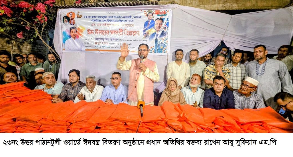 শনিবার (১৪ মার্চ) ২৩নং উত্তর পাঠানটুলী ওয়ার্ডে চট্টগ্রাম মহানগর বিএনপির য্গ্মু আহবায়ক এস.এম সাইফুল আলমের উদ্যোগে দলীয় নেতাকর্মী, এয়োদশ জাতীয় সংসদ নির্বাচনে দায়িত্ব পালনকারী নির্বাচনী এজেন্ট ও ইমাম-মুয়াজ্জিনদের মাঝে “ঈদ উপহার বিতরণ” অনুষ্ঠানে প্রধান অতিথির বক্তব্যে তিনি এ কথা বলেন।