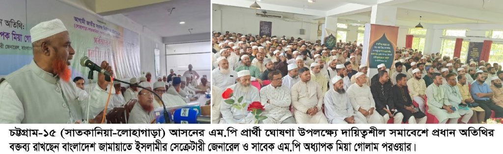 চট্টগ্রাম মহানগরী জামায়াতে ইসলামীর আমিরের পদ হারালেন শাহজাহান চৌধুরী। শুক্রবার দলের সেক্রেটারি জেনারেল অধ্যাপক মিয়া গোলাম পরওয়ারের উপস্থিতিতে অনুষ্ঠিত মহানগর জামায়াতের এক বিশেষ দায়িত্বশীল সমাবেশ শেষে দেওয়া প্রেস বিজ্ঞপ্তিতে শাহজাহান চৌধুরীর পদচ্যুতির বিষয়টি জানা যায়। ওই বৈঠকে মহানগর জামায়াতের নায়েবে আমির নজরুল ইসলামকে ভারপ্রাপ্ত আমির হিসেবে উল্লেখ করা হয়। সমাবেশে শাহজাহান চৌধুরী উপস্থিত ছিলেন। প্রেস […]