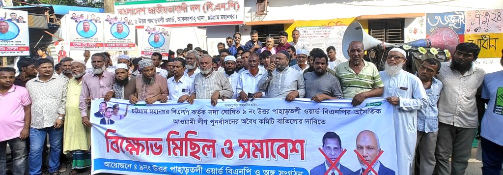 পাহাড়তলী ওয়ার্ড বিএনপি’র কমিটি বাতিলের দাবীতে প্রতিবাদ সমাবেশ