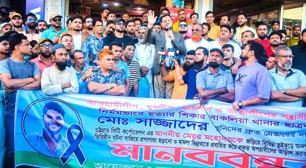 নিউজগার্ডেন ডেস্ক: বাকলিয়া থানা ছাত্রদল নেতা মো. সাজ্জাদকে নির্মমভাবে হত্যার প্রতিবাদে এবং প্রকৃত খুনিদের অবিলম্বে গ্রেফতারের দাবিতে বৃহত্তর বাকলিয়ার সর্বস্তরের জনসাধারণের উদ্যোগে এক বিশাল মানববন্ধন অনুষ্ঠিত হয়েছে। বৃহস্পতিবার (২৭ নভেম্বর) বিকেলে নগরীর বাকলিয়া এক্সেস রোডের লন্ডন বেকারীর সামনে আয়োজিত এই মানববন্ধনে প্রধান অতিথি হিসেবে বক্তব্য রাখেন চট্টগ্রাম দক্ষিণ জেলা বিএনপির সাবেক আহ্বায়ক আবু সুফিয়ান। মানববন্ধনে […]